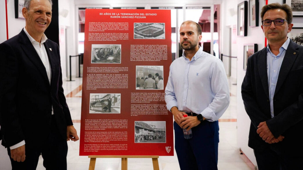 Joaquín Caparrós encabeza la inauguración de una exposición que celebra el 50 aniversario de la finalización del estadio Ramón Sánchez-Pizjuán. El evento también presentó el programa de actividades del Departamento de Historia del club.
