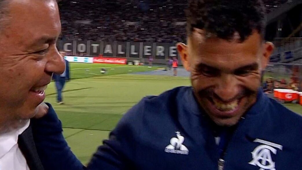 Tres años después, Carlos Tevez y Marcelo Gallardo volvieron a encontrarse en un campo de juego. En la previa del comienzo del partido entre Talleres y River, rodeados de cámaras y flashes, los entrenadores compartieron un simpático momento en la zona de los bancos de suplentes del Mario Kempes, distendidos a pesar de la presión con la que llegaron a este compromiso.