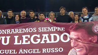 El video repasó momentos significativos como la vuelta olímpica y expresiones del profundo amor de Russo por el club, conmoviendo a su familia presente. Una bandera con la leyenda «Honraremos tu legado» sirvió de marco para que la familia, la dirigencia y jugadores invitados posaran juntos.