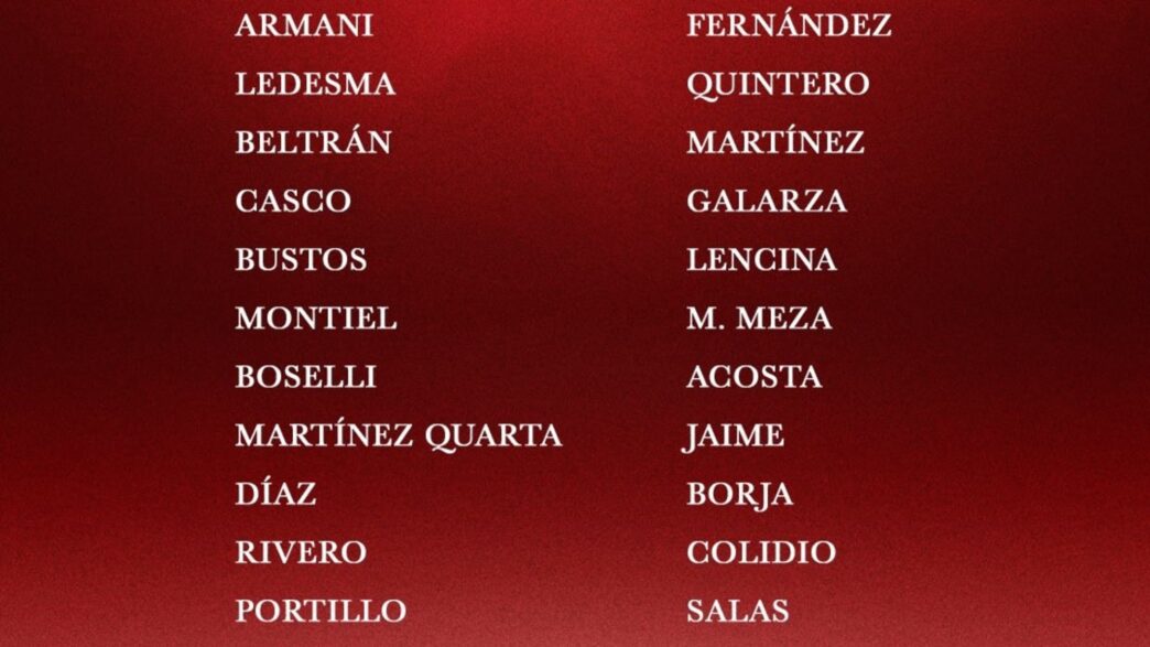 La lista de convocados presenta novedades importantes. No contará con Enzo Pérez, quien realiza acondicionamiento físico, pero recupera a Juan Portillo tras cumplir su suspensión. También regresa Gonzalo Martínez, tras una larga recuperación, y Jeremías Ledesma, quien se ausentó por lumbalgia.